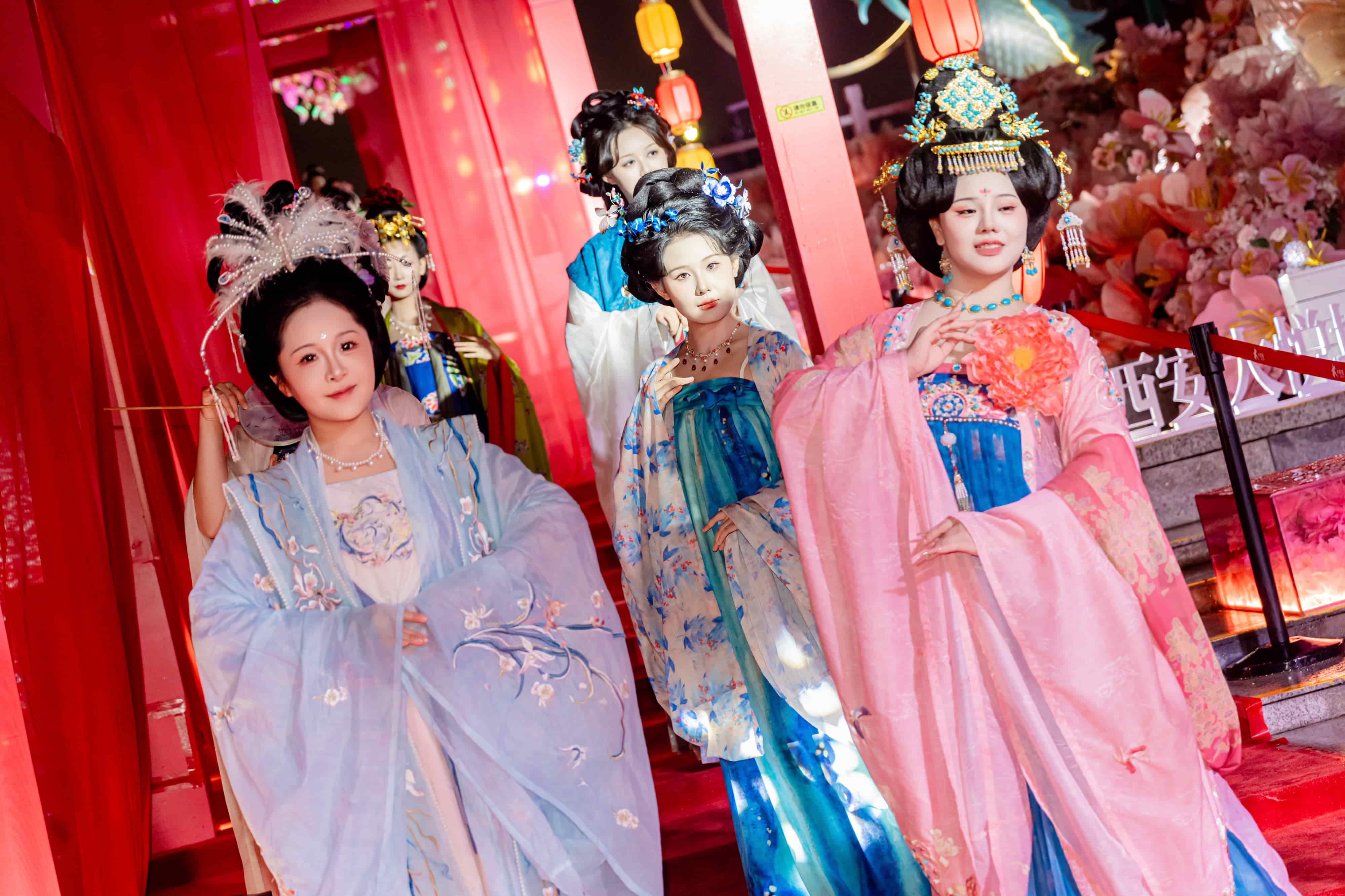 与西安时装周XFW携手打造,露天全景式盛唐国风大秀,华灯盛景、红帐帷幔氛围感拉满